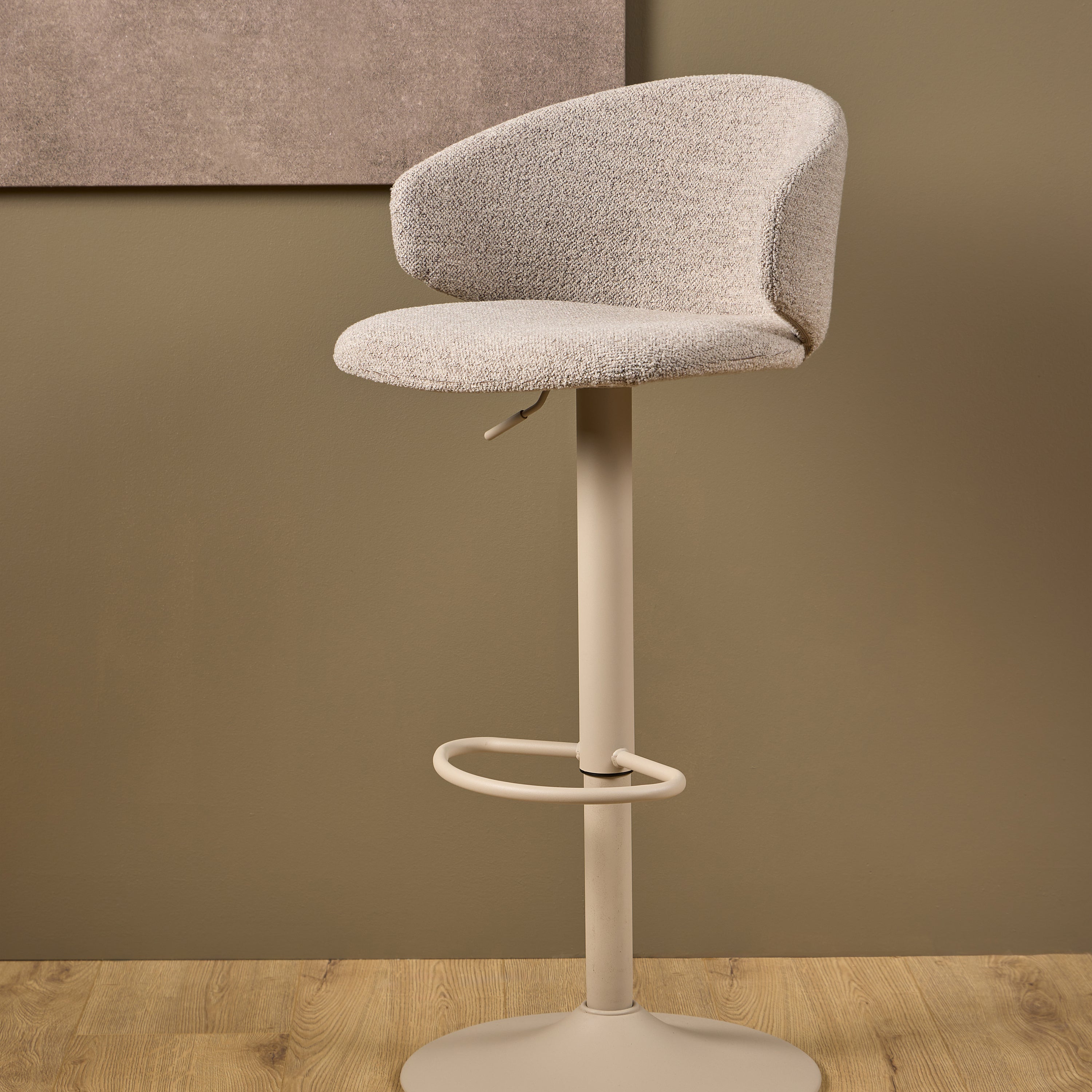 Kave Home - Ciselia kruk beige chenille en zwarte stalen poten hoogte