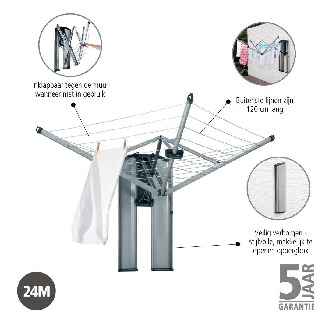Brabantia WallFix Droogmolen 24 m incl. Beschermbox