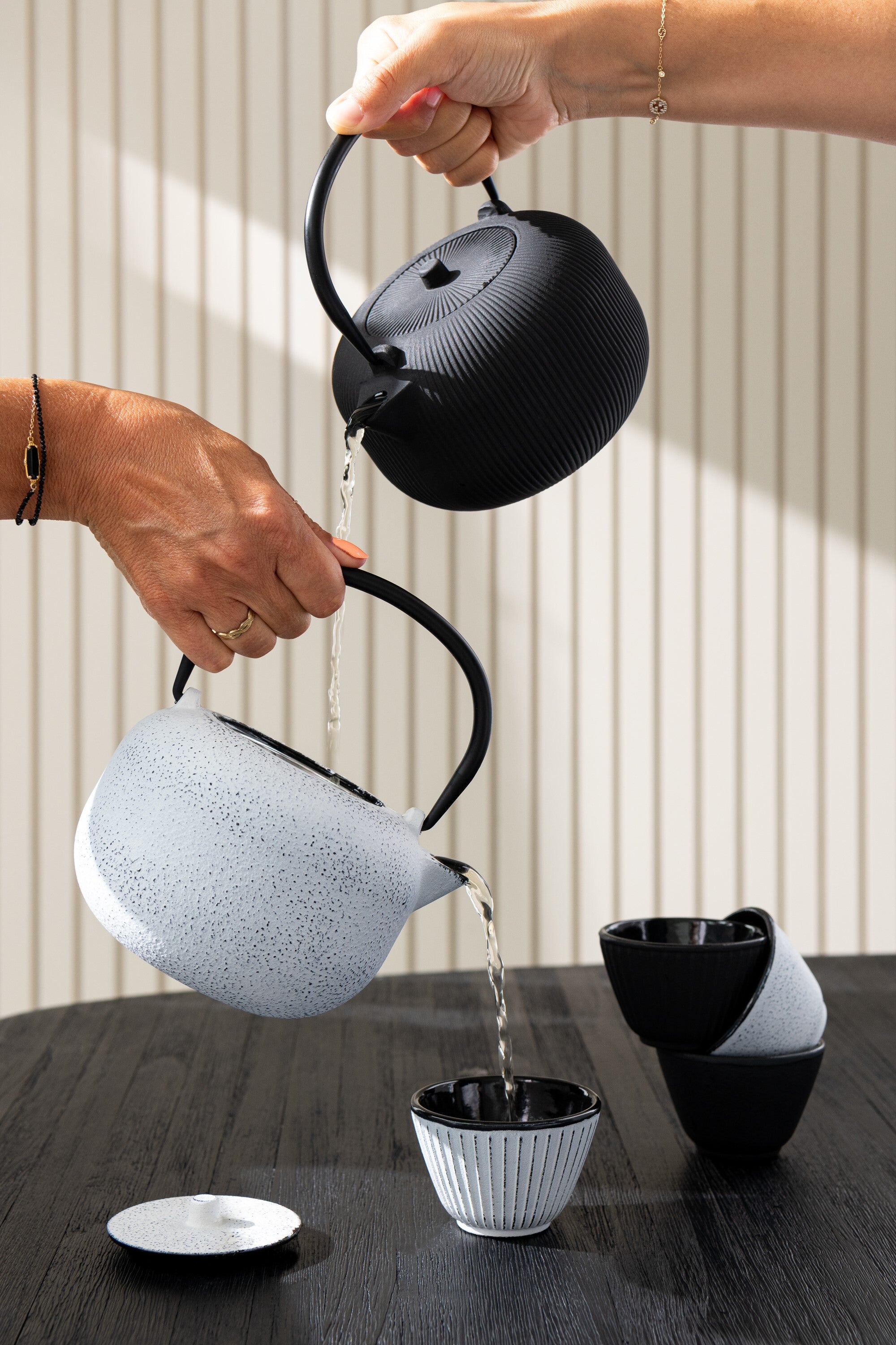 J-Line theepot + tas - keramiek - zwart wit - giftbox