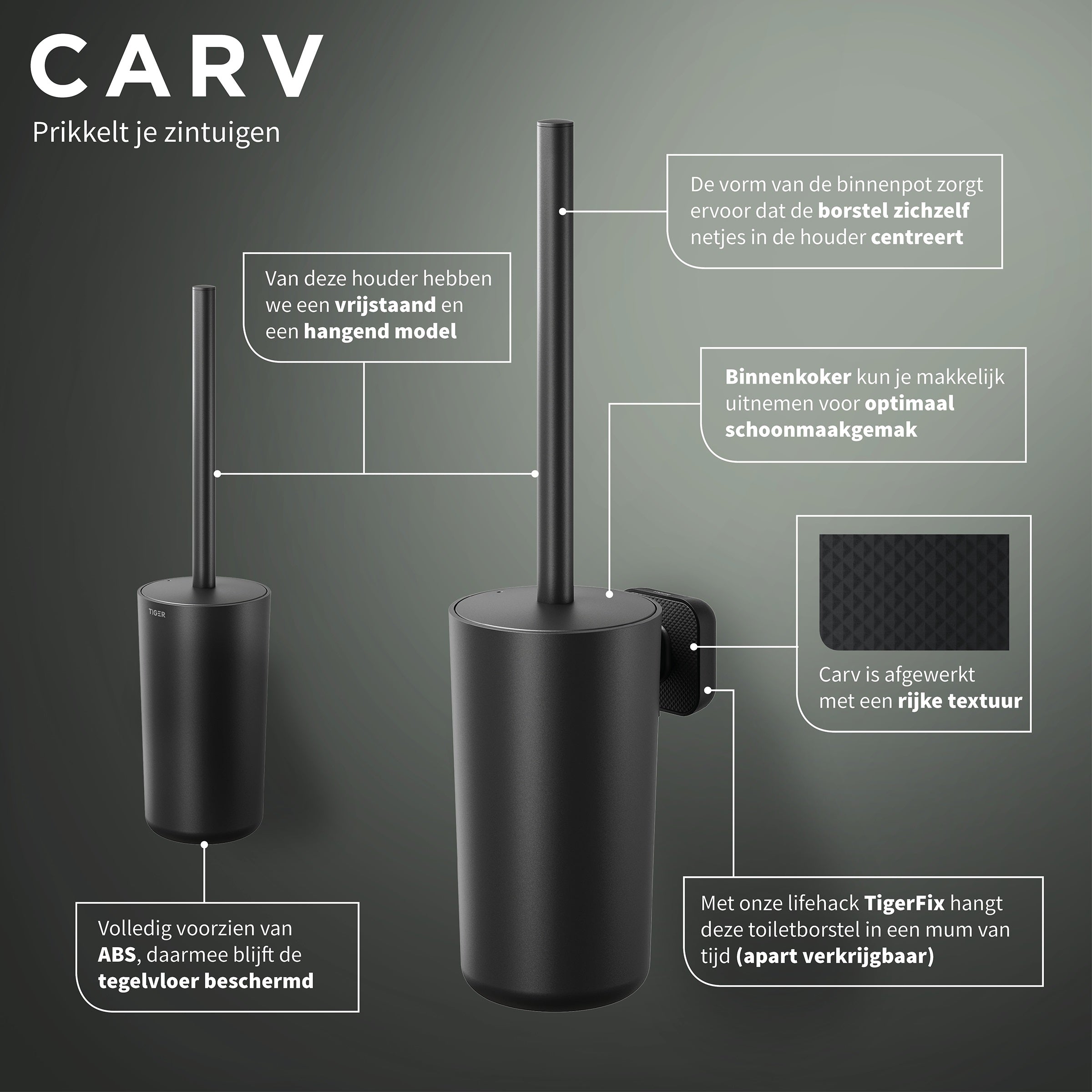 Tiger Noon Toiletaccessoireset - Toiletborstel met Houder - Toiletrolh